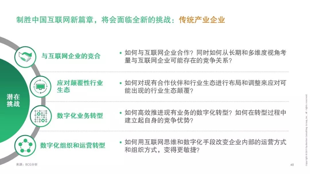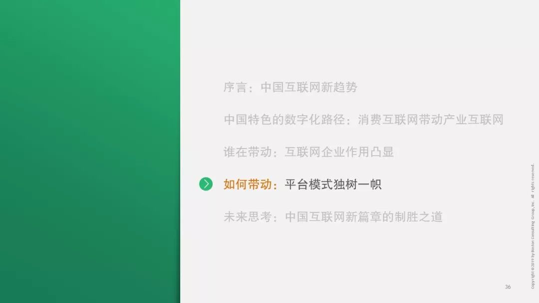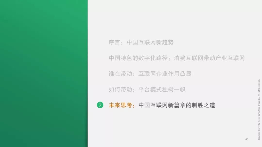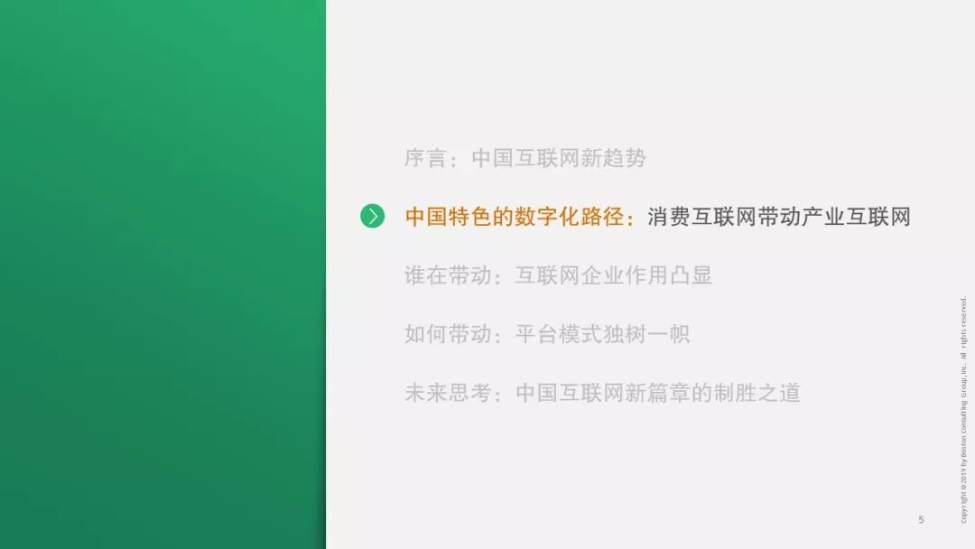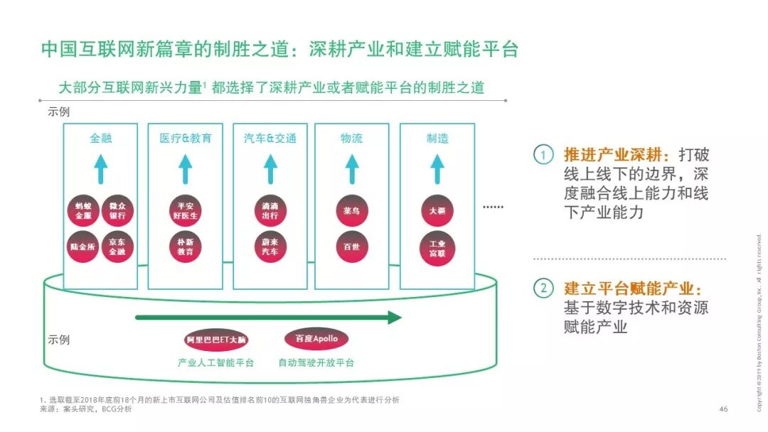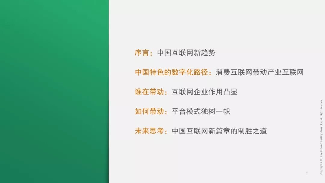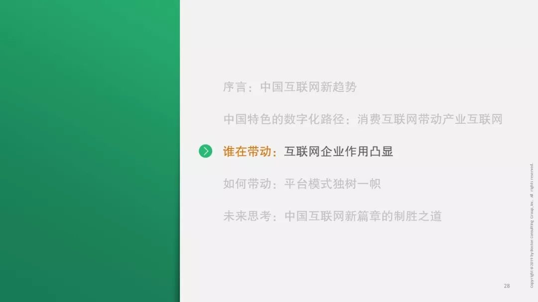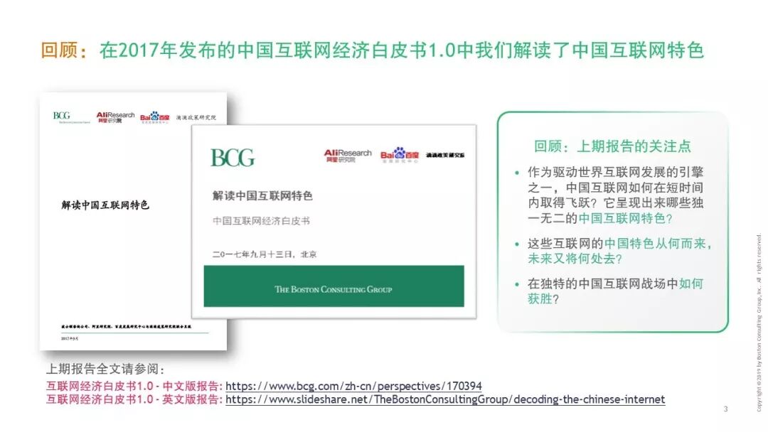 2017年9月13日,BCG攜手阿里研究院、百度發展研究中心和滴滴政策研究院共同發布了中國互聯網經濟白皮書1.0,第一次全面解讀了中國互聯網的「中國特色」。